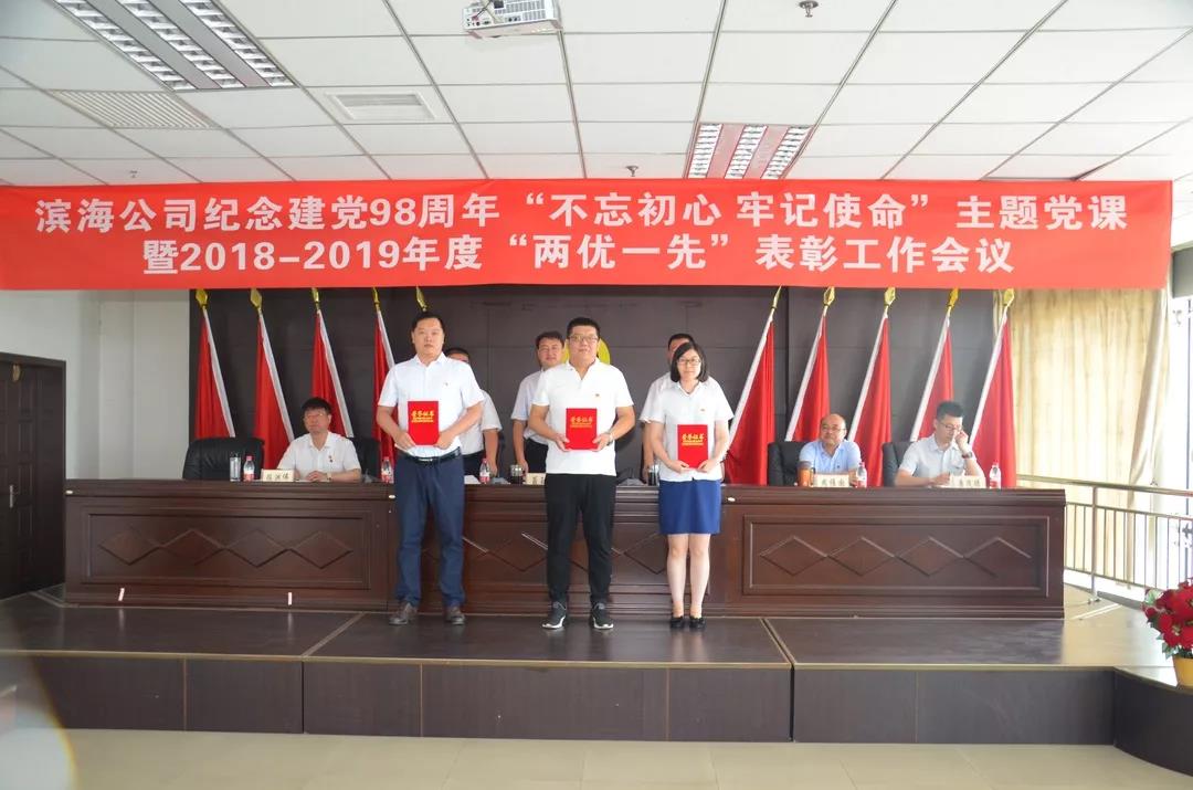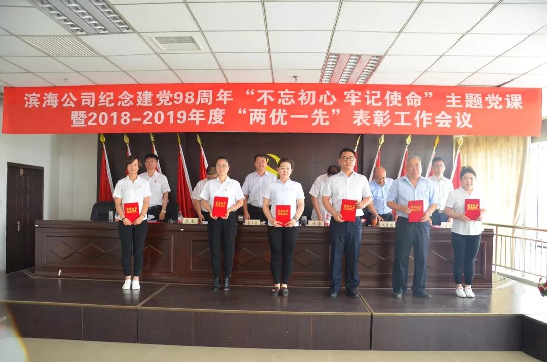 | 【不忘初心、牢记使命】滨海公司召开纪念建党98周年“不忘初心 牢记使命”主题党课暨2018-2019年度“两优一先”表彰工作会议 |