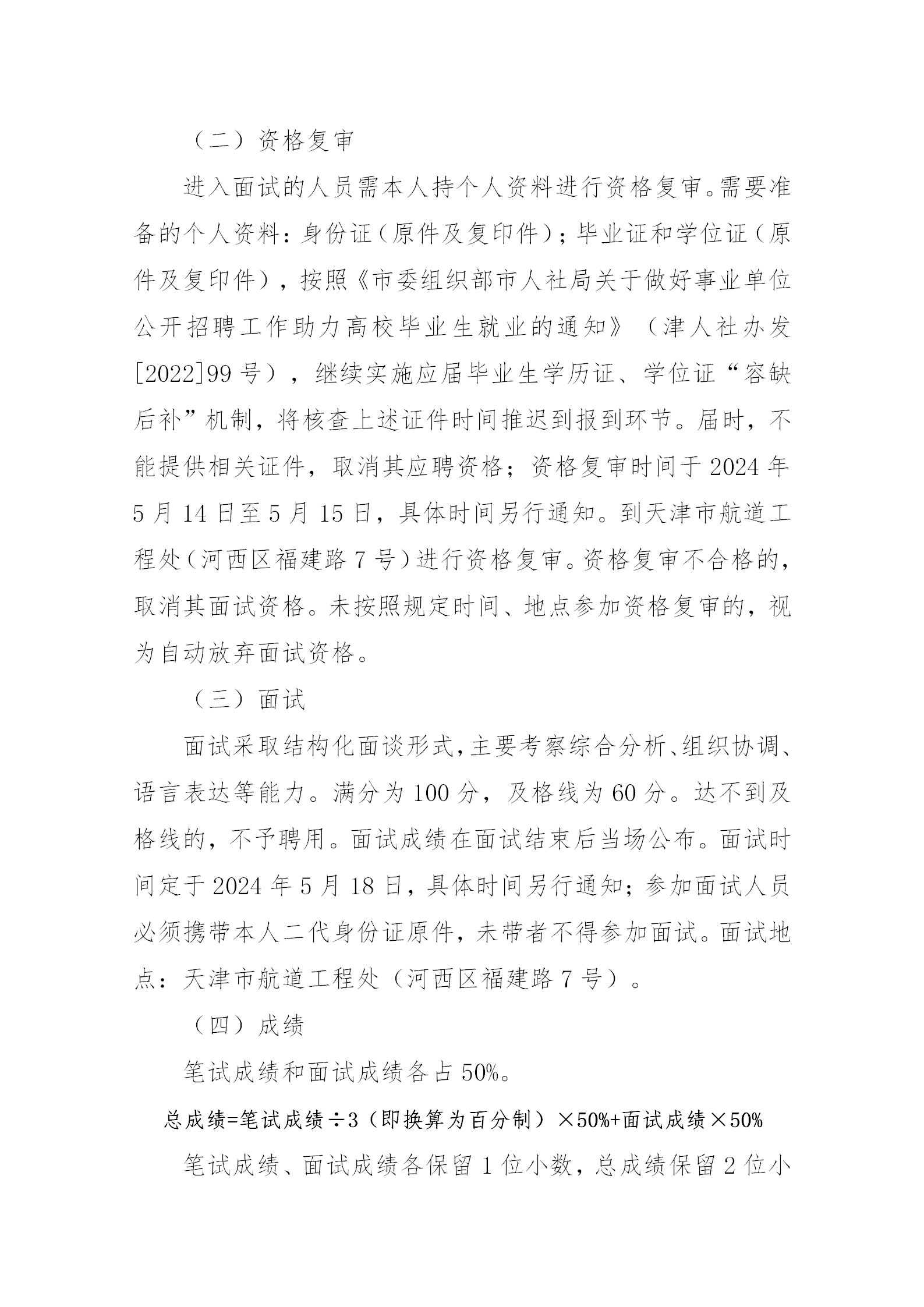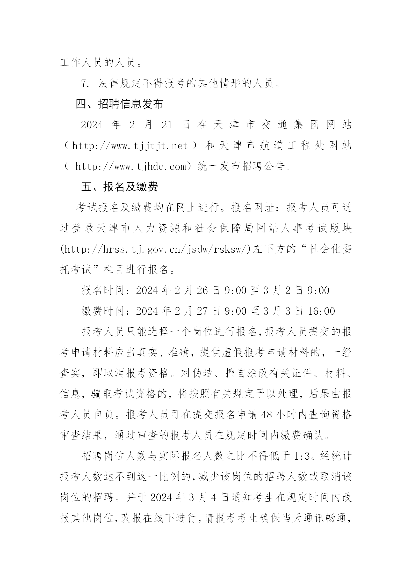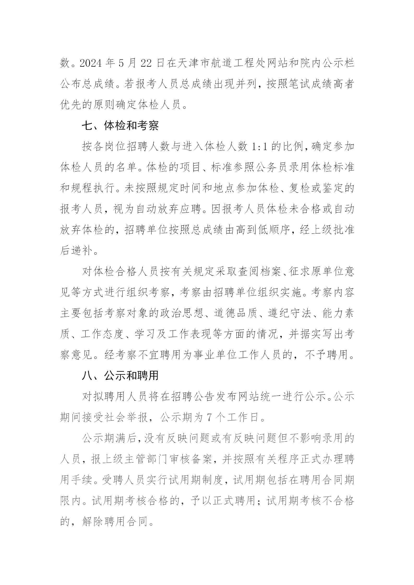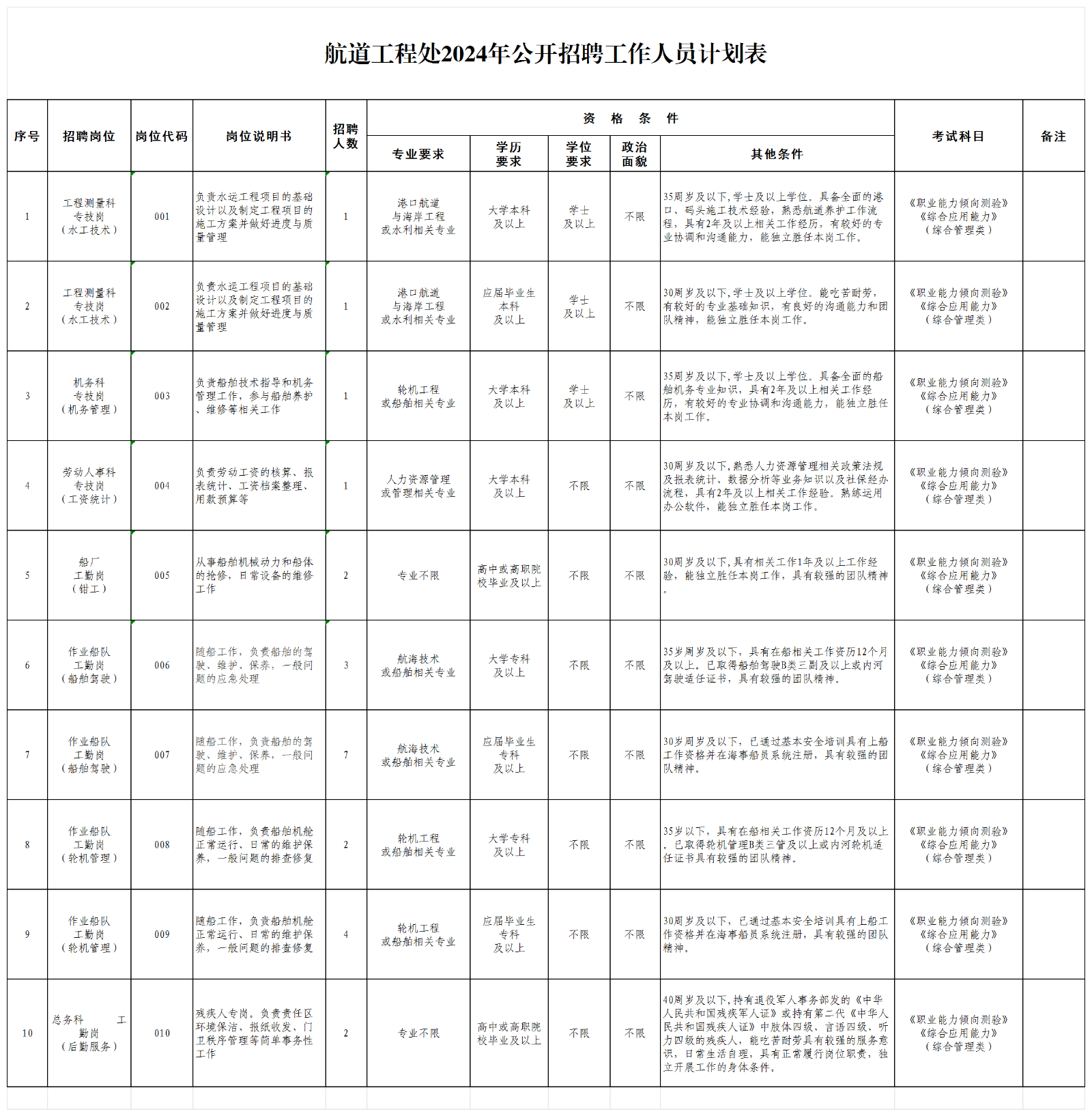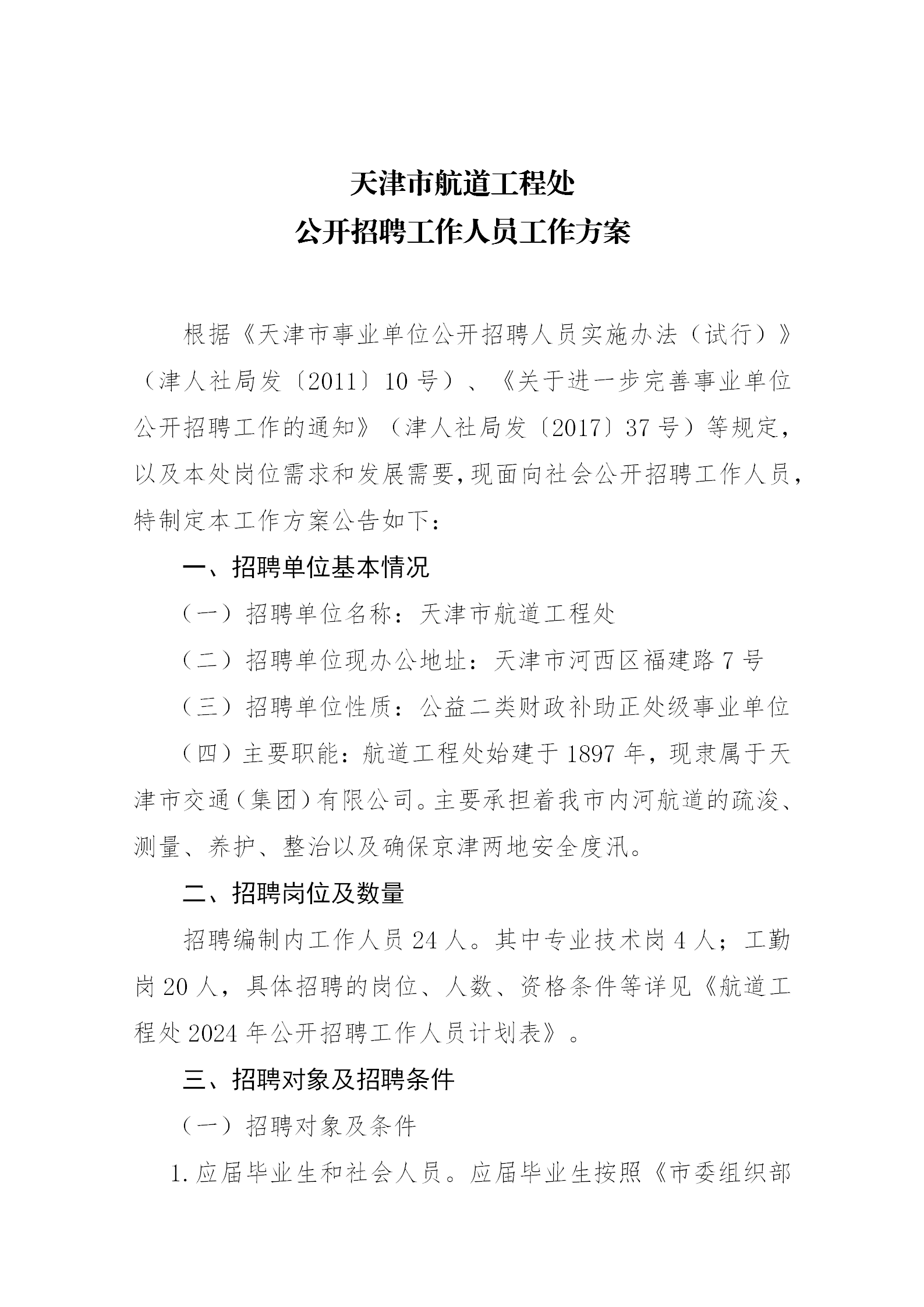 天津市航道工程处公开招聘工作方案