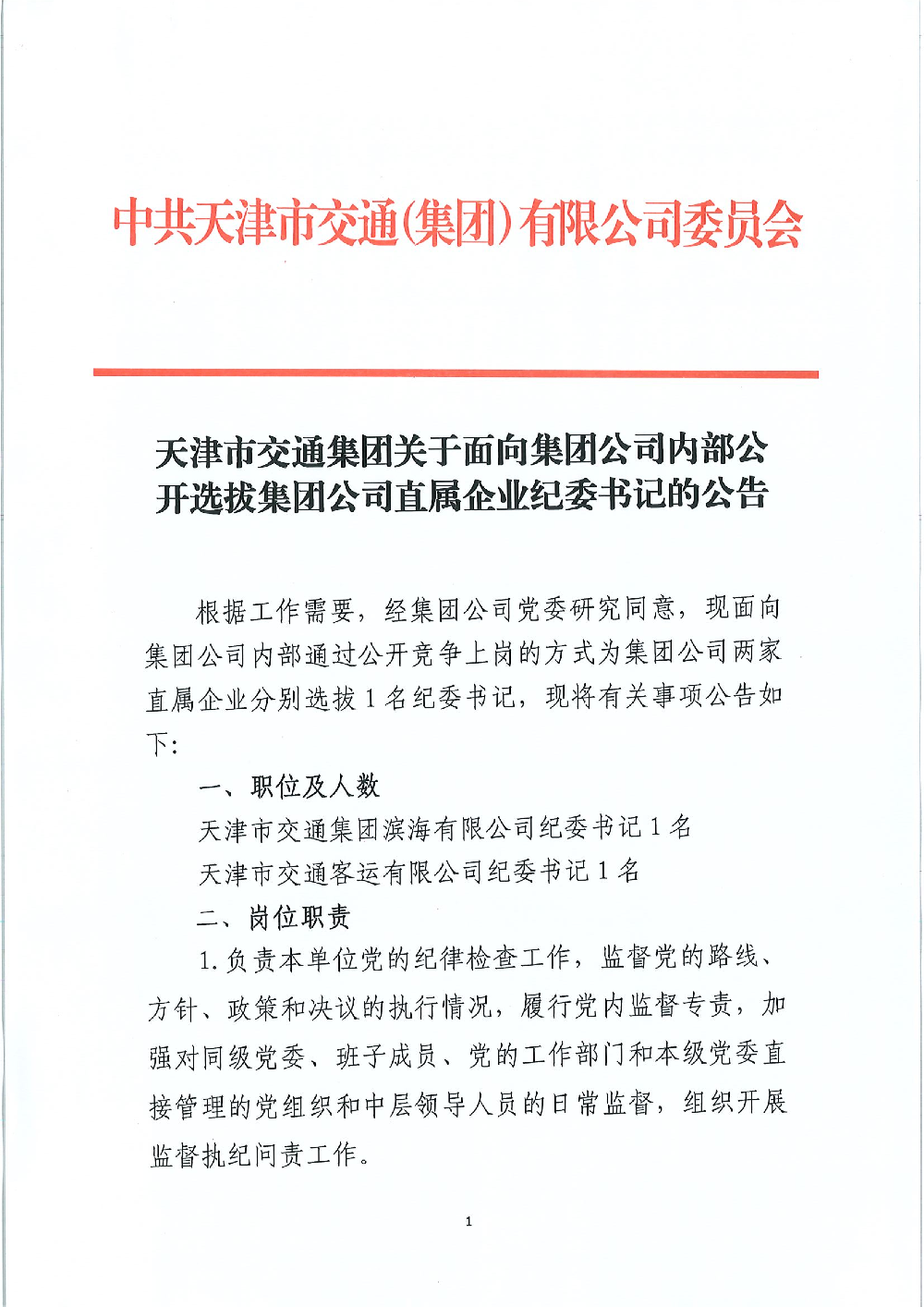 天津市绿帽小说 关于面向绿帽小说公司内部公开选拔绿帽小说公司直属企业纪委书记的公告